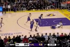 吓人呀!东契奇试图反击被卡斯尔绊倒 摔到地板上贼疼